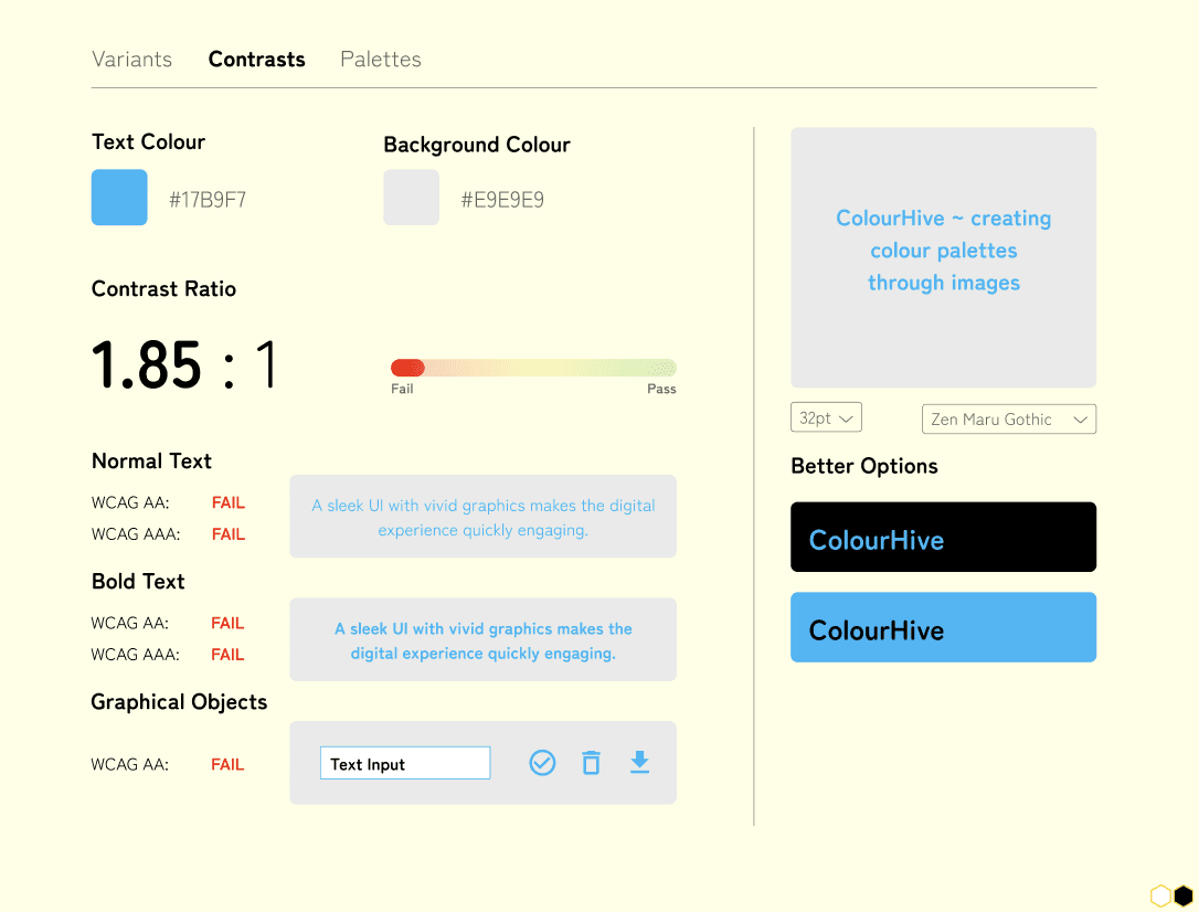Built-in WCAG contrast ratio testing.